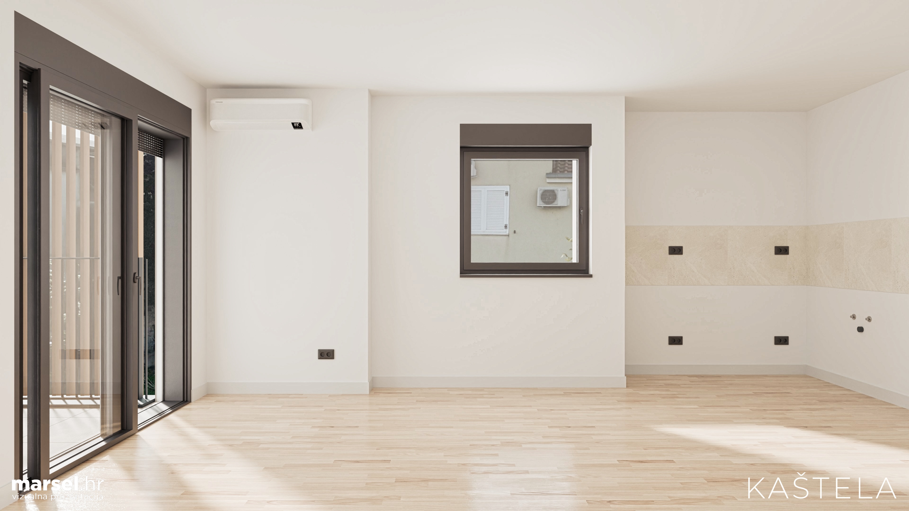 - Stolarija: Vanjska stolarija izrađena od aluminija - dugotrajna, elegantna i energetski učinkovita.